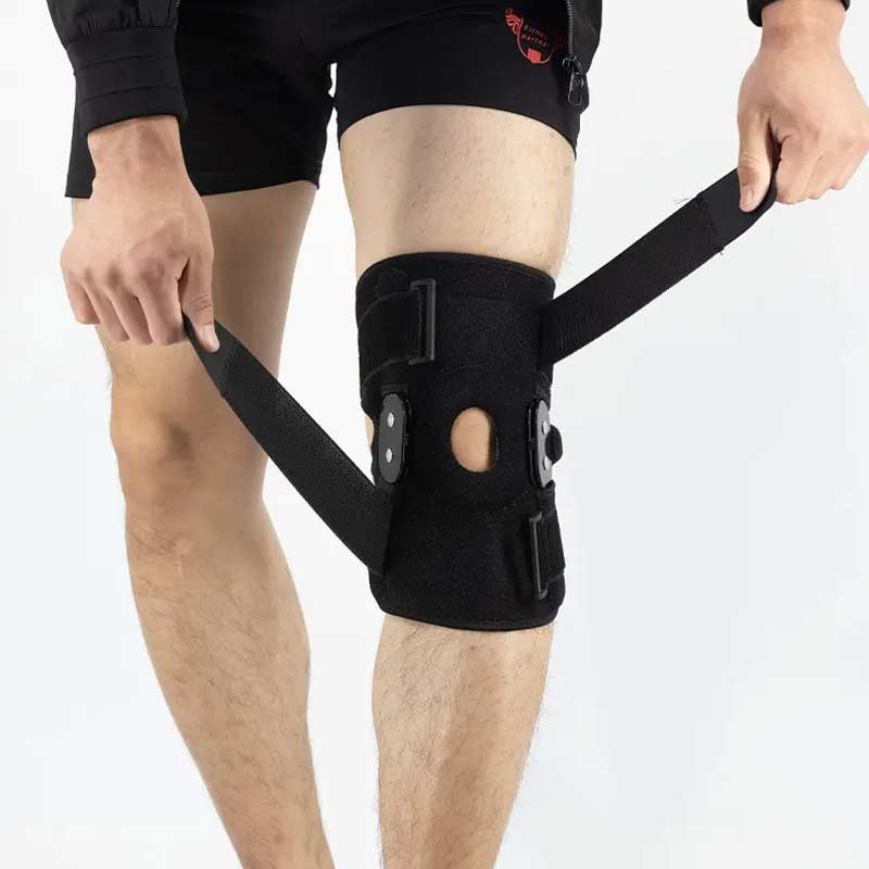 Obje strane steznika za koljeno podupiru metalne ploče koje pružaju stabilnu potporu zglobovima koljena, smanjuju pritisak na koljeno i pružaju profesionalnu podršku mišićima u raznim sportovima. Također, steznica može učinkovito ublažiti bolove kod raznih problema s koljenima od artritisa, puknuća meniskusa, tendinitisa, trošenja i habanja hrskavice, ….